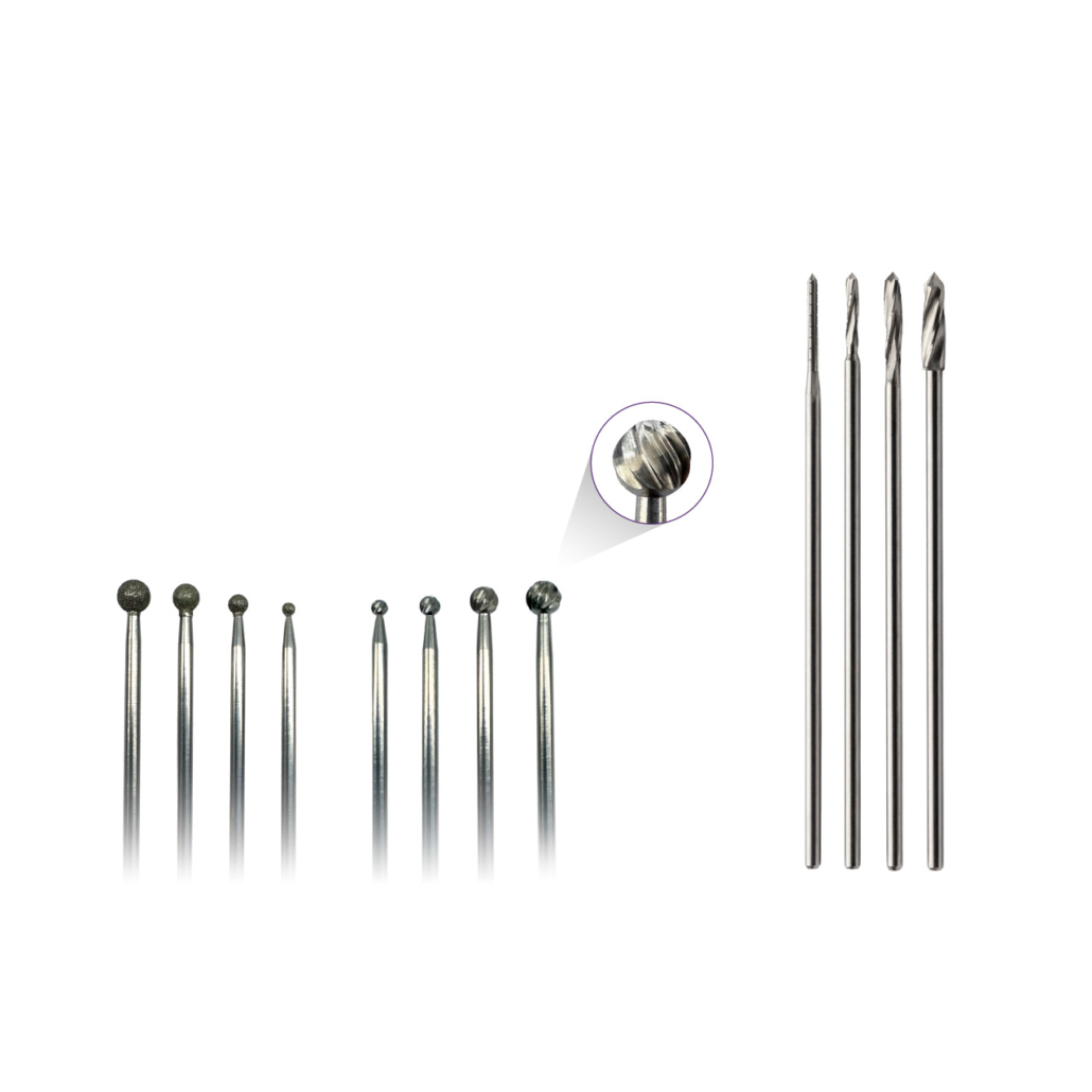 Indicadas para procedimentos bucomaxofaciais onde haja necessidade de perfurar, cortar, raspar, desbastar e/ou retirar excessos de tecidos ósseos e cartilaginosos de forma segura e precisa. Possuem compatibilidade com vários modelos de Drill.